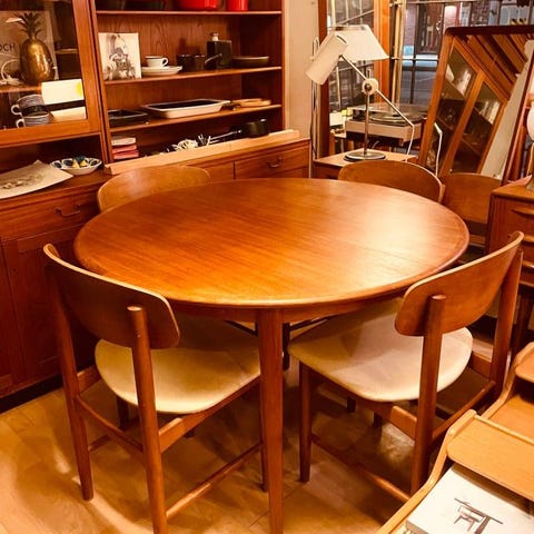 Retro runt matbord i teak & valnöt från Skaraborgs Möbelindustri Tibro 1950/1960