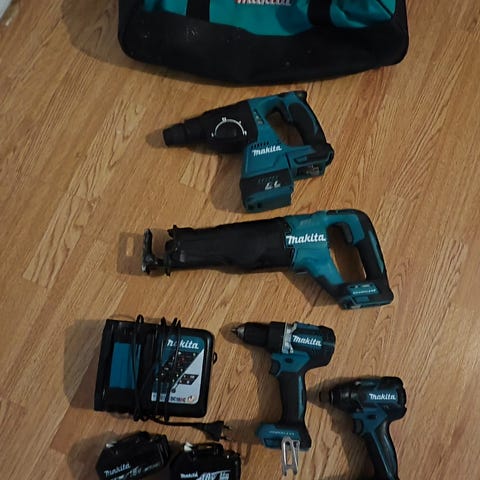 Summasumarum: skruvdragare, cirkelsåg(näst intiĺl ny klinga), sticksåg, 2 batterier , 2 laddare.