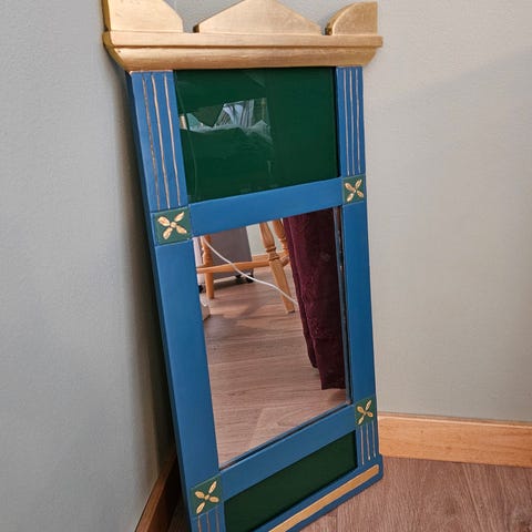 Förgylld spegel med bord. Tyvärr är marmorskivan borta.