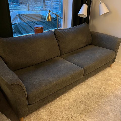 Stor, djup o mysig soffa med tvättbar klädsel (nytvättad)