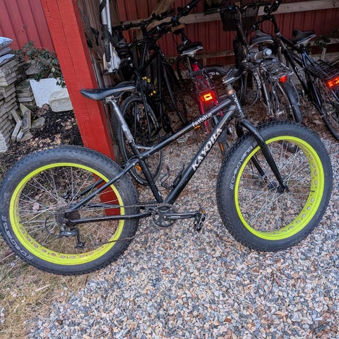 Stick iväg på en fatbike om du vill ha omväxling från dina vanliga cykelturer. Med en fatbike är det lättare att ta sig till platser som är utmanande att nå med terrängcykel. Du kan cykla på svåra underlag som på sand och snö eller bland trärötter. Tack vare de breda däckens grepp passar cykeln också för användning året runt. Tunturi Colorado är utrustad med Shimano Altus/Acera-kraftöverföring. Cykeln har åtta växlar. Bromskraften i de hydrauliska Shimano-skivbromsarna är effektiv även vid dåligt väder.