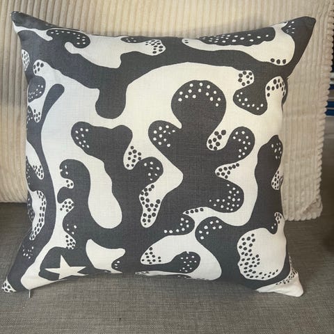 Kuddfodral /Manhattan/ framsida/Tyg från firma SVENSKT TENN! På andra sidan matchade,enfärgade linne tyg, välsydd / overlock, dragkedja på botten