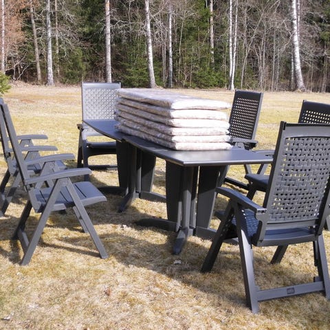 Lätta möbler, perfekt för husbil/husvagn men fungerar också fint i trädgården. Använda under 8-10veckor totalt, nyskick.