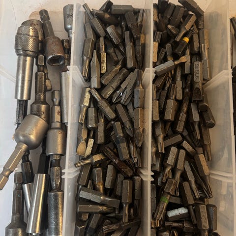 Sortimentslåda med popnitar skruvar och muttrar metall