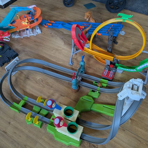 Säljer en Hot Wheels Action 4-Loop Crash Out som köptes som födelsedagspresent. Den är knappt använd och har mest stått och samlat damm sedan dess, så vi säljer den hellre så att någon annan får glädje av den.