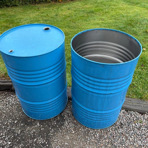 Den stora 240 liter ,den lilla 80 liter ,det finns flera av varje ,300 kr. /st