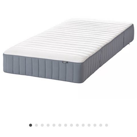 IKEA VALEVÅG resårmadrass. Madrassen har vadderad ovansida och quiltat överdrag samt slät, vadderad kant runt om. Passar som madrass i sängram eller på ribbotten i sängstomme.