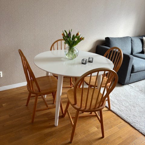 Stolar och bord är helt och stabilt.