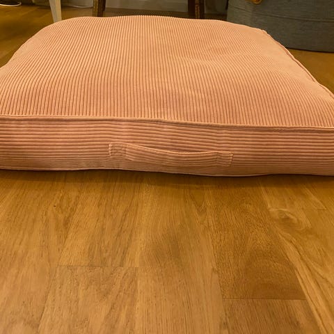 Säljer en stor kudde som flera kan sitta eller ligga på. Kudden är inköpt på Soffor & Sängar i Malmö för några år sedan och har storlek 120 x 120 cm. Avtagbar mörkgul klädsel i slittåligt manchestermaterial. Bild nr 1 motsvarar färgen bäst. Mycket skön och härlig kudde. Nytvättad och i bra skick. Finns i ett djur- och rökfritt hem.