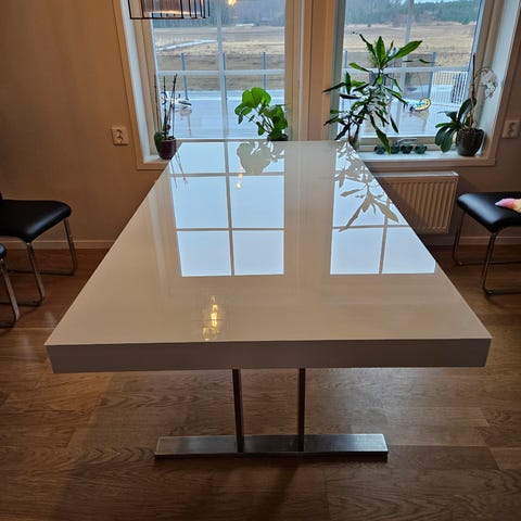 Matbord från Mio, sparsam använd, längd 180/230 cm/bredd 90 cm/höjd 75cm. Redo för hämtning, kan hjälpa med utbärning.