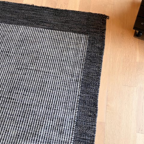 Ullmatta Stripe. 200x140 cm. Grå. Handvävd ullmatta av hög kvalite. Vändbar. Perfekt under matgrupp eller soffbord.