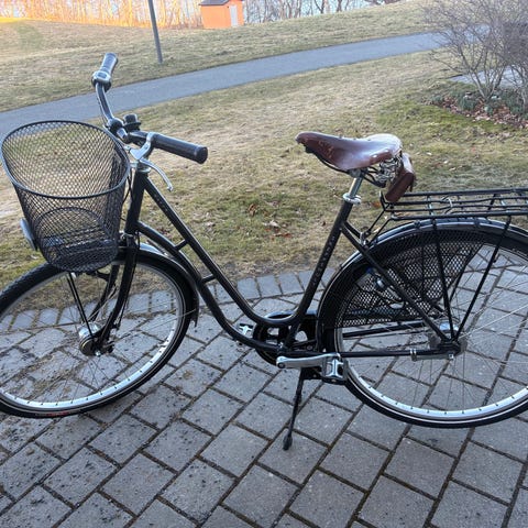 Skeppshult Elit sjuväxlad ramstorlek 53 cm och 28"/700c-hjul. Cykeln har lågt insteg, pakethållare bak, stänkskärmar och belysning. Utrustad med bekväm sadel och raka styren för upprätt körställning. Passar vardagscykling och pendling på väg och cykelbana. Mycket fint skick,Sparsamt använd. Nypris 11900 kr