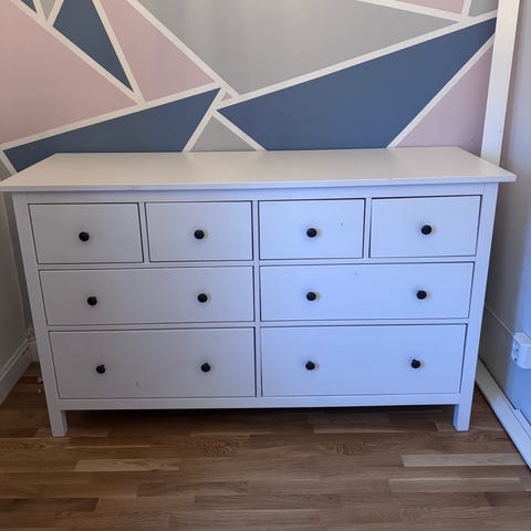Hemmes byrå säljes med måtten 160x96cm och 8 lådor.