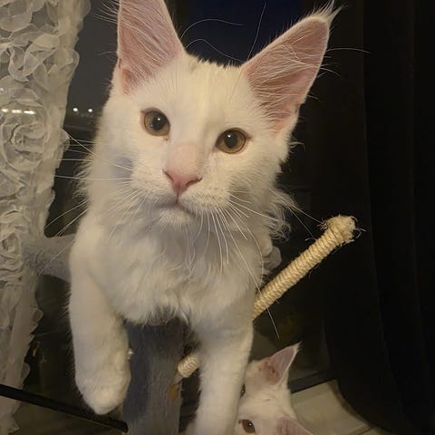 Mamman är en mycket snäll Maine Coon, och kattungarna är 100 % Maine Coon på mammans sida. Pappan är Brittisk korthår. Kombinationen ger ofta mycket tillgivna, lekfulla och harmoniska katter.