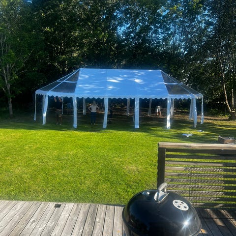 Flextents partytält i grön färg. Tältet har tak och sidoväggar samt ställning i metall. Lämpligt som skydd mot sol och lättare regn vid exempelvis trädgårdssammankomster eller andra utomhusaktiviteter. Tältet kan användas både med och utan sidoväggar beroende på behov.