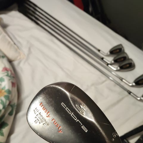 Original Cobra stiff-skaft monterade och både har 8 grader bounce. Väldigt mycket spinn kvar i groovsen.