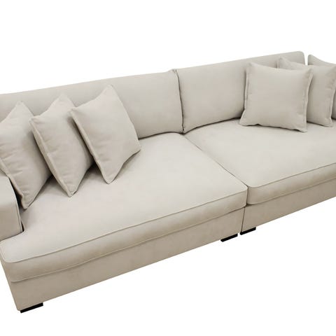 Klädseln är avtagbar och tvättbar, vilket gör soffan lätt att hålla fräsch. Den är rymlig och perfekt för både vardagsrum och större sällskapsytor.