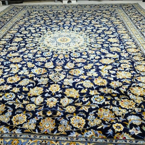 Persisk matta 12 m² (ca 3 × 4 m) – 1200 shane, silkedetaljer och relief