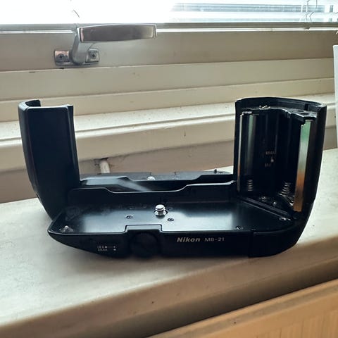 Ett batteri EN-EL18 medföljer, har ingen laddare.