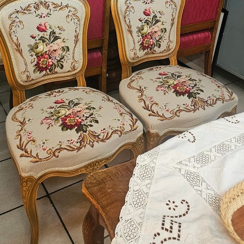 Rokokostolar med tillhörande pall