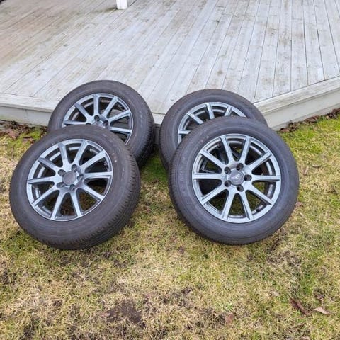 16” Opel original fälgar med kapslar och MS däck i begagnat skick.