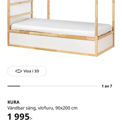 IKEA Kura - våningssäng för barn. I stabilt skick men sidobrädorna är målade och någon saknas. Perfekt för den som vill lägga in egna brädor eller köra utan. 300:-