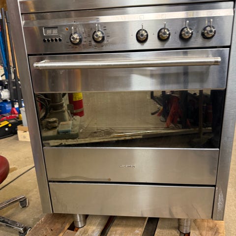 På grund av flytt så säljer jag en helt ny gasspis med ugn på el med tillhörande fläkt av märket Smeg.