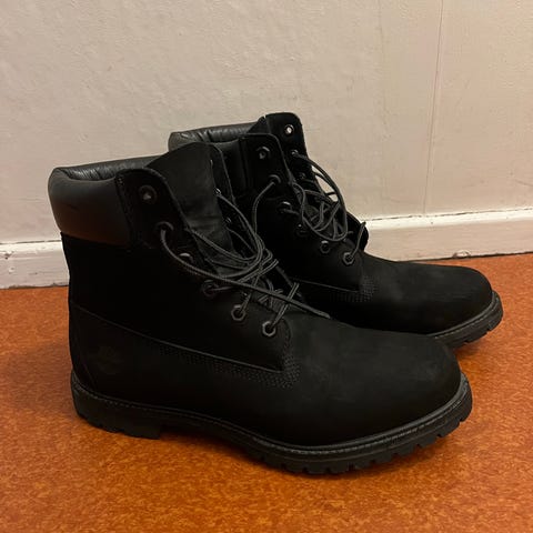 Timberland Euro Sprint vinterkängor i storlek 42. Modellen är en ankelhög känga med svart ovandel och ljusare foder. Skorna har snörning framtill med metallöglor och grovmönstrad yttersula i gummi. Passar för användning under kallare väder och vardagsbruk utomhus.
