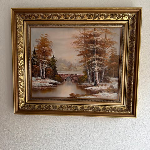 Tavla stadsmotiv med guldram