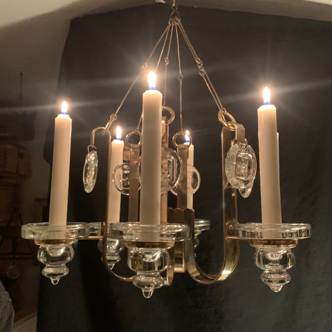 Design Bertil Vallien ljuskrona - Boda smide 4 ljuskällor i glas med 6 stycken extralänkar. Diameter ca 29 cm. Höjd exkl. länkar ca 32 cm. Tillhörande släckare, ca 30 cm. Driver effektivt ut fukt i inglasade uterum på exempelvis en balkong eller i stugan på landet. Ger även en välkomnande varm känsla som få vanliga taklampor gör och har man den på lantstället så ger den både ljus och värme vid eventuella elavbrott Om någon saknar bil och är nöjd efter att ha sett ljuskronan ( visas i trapphuset i entrén till där jag bor) så kan jag till självkostnadspris transportera den till köparens bostadsadress men endast inom Stockholms innerstad. Om någon saknar bil och är nöjd efter att ha sett ljuskronan ( visas i trapphuset i entrén till där jag bor i Hjorthagen ) så kan jag till självkostnadspris transportera den till köparens bostadsadress men endast inom Stockholms innerstad.
