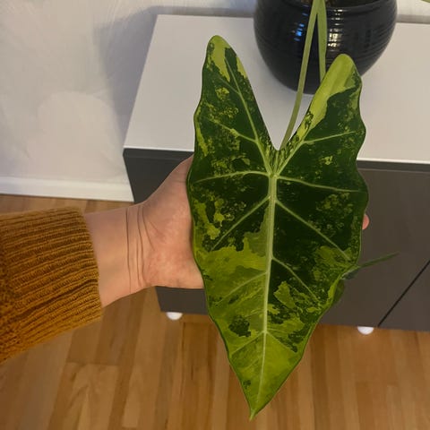 Bladkantstorkning förekommer på flera blad efter att jag missat att vattna den, det går att klippa bort. Se bild.