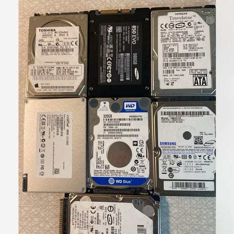 Ett parti med 5st 2,5" hårddiskar säljes. Lagringskapaciteter enligt vad som går att utläsa på bild. Alla fungerar.