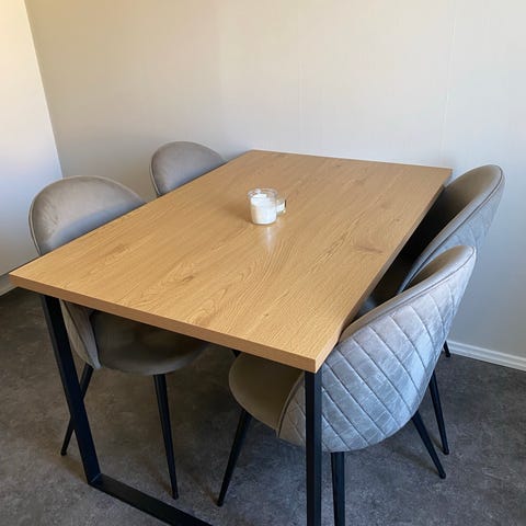 Asymmetriskt 4-sitsigt matbord i trälook med svarta ben