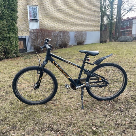 Egentligen sparsamt använd och jättefint skick, men den har ett utnött och punkterat bakdäck, så den kräver lite service, men efter det i princip nyskick.