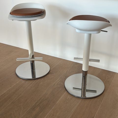 2 st barstolar Freja från by Crea. Svart stålram med sits i veganskt läder . Mycket stabil och stilren design.
