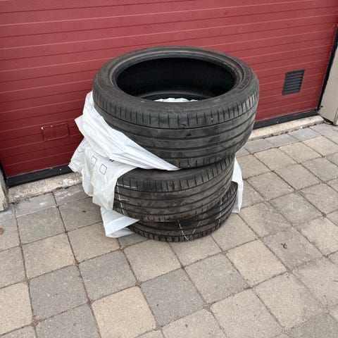 Har kört bara 400mil hade suttit på en ny ORA elbil pris 2000kr , jag köpte åretrunt däck till min bil.