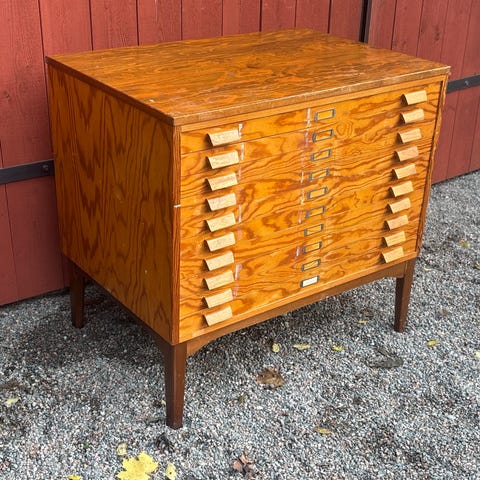 Klassiskt ritningsskåp som kommer från ett arkitektkontor.