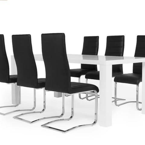 Ratliff matbord och Cibus stol är en snygg kombo tack vare bådas moderna stil. Cibus stol har ett lätt gung som ger en extra behaglig sittkomfort.