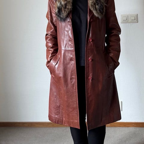 Underbar retro/vintage pälsjacka med skinninslag. En elegant modell som känns förvånansvärt modern i stilen trots sin ålder – perfekt för både ett retro- och vintageinspirerat uttryck eller som kontrast till en mer modern garderob.
