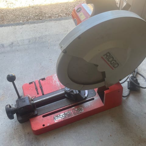 Pela Tools Jg356F kapmaskin för metall med 355 mm klingdiameter. Specifikationer enligt märkning: 230 V, 50 Hz, 2400 W, varvtal utan belastning 3800 rpm. Avsedd för kapning av metallmaterial med lämpliga kapskivor. 1.000:-
