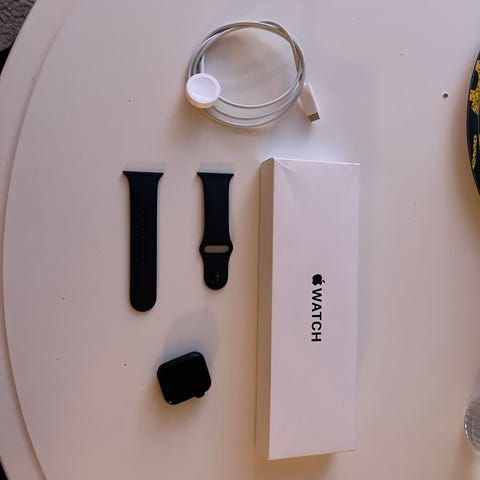 Originalkartong medföljer, samt originalarmband i S/M och M/L. Det mindre armbandet är använt en mycket kort tid, det större är oanvänt.