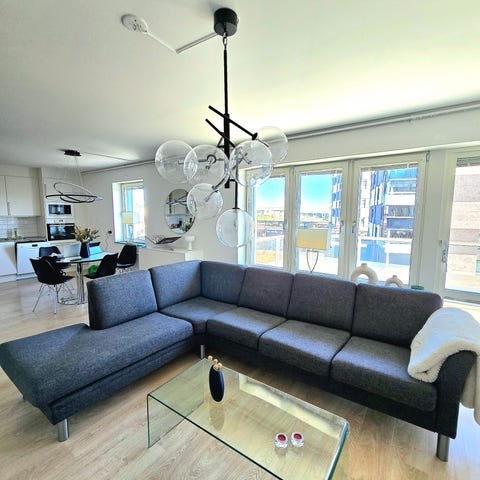 Soffan är i bra skick och har använts i ett rökfritt och djurfritt hem. Den neutrala färgen passar lätt in i de flesta hem och stilar.