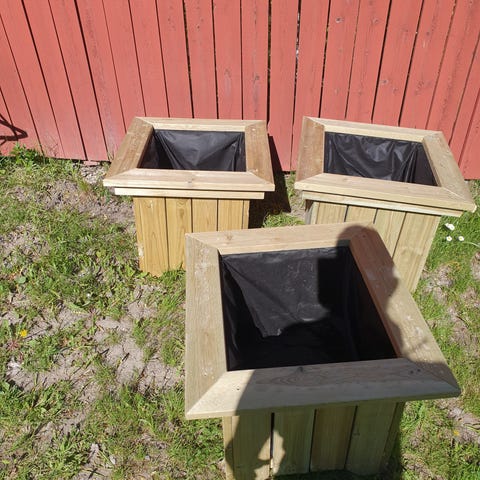 Tillverkade i tryckimpregnerat virke med markduk i botten och sidor.