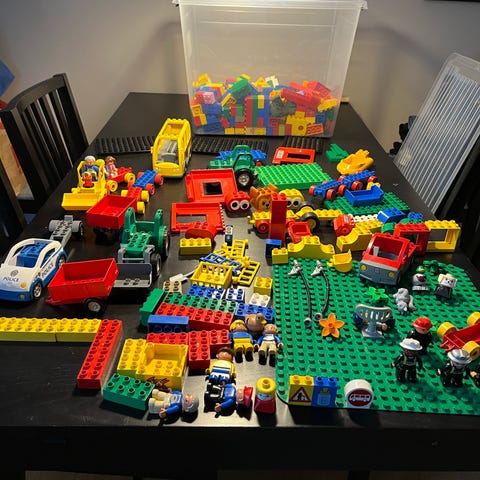 Stor låda duplo lego säljes, barnen är för stora så därav säljs det. (Lådan ingår ej)