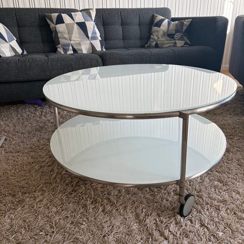 Vitt Soffbord i superfint skick. Med smart hylla under. Mått 140x70cm