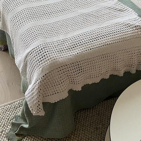 IKEA rutigt textilset beige och grönt
