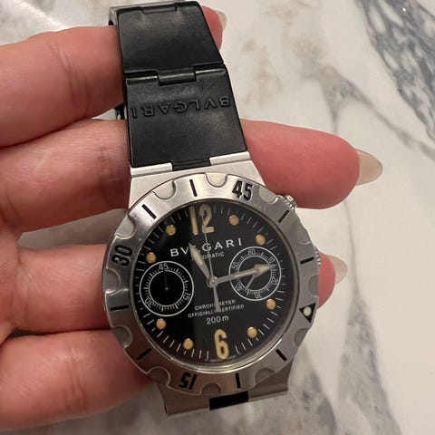 Säljer min Bvlgari diagono lcv35s med svart tavla. Den kommer utan låda och papper. Okänd servicehistorik, men har gått bra under min tid med den.