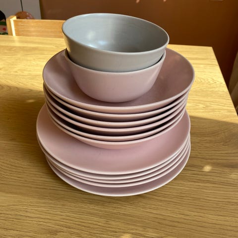IKEA’s 18 delar FÄRGKLAR tallrikar set i vit. Setet består av 12 flata tallrikar i olika storlekar samt 6 djupa tallrikar/skåltallrikar.