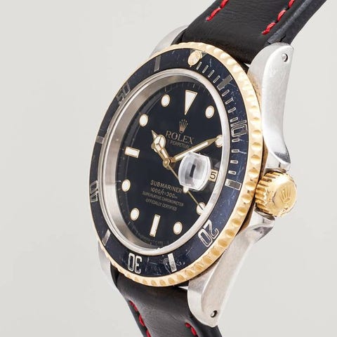 Klocka från Rolex Pre-Owned. Rolex Submariner är en klassisk dykare som kombinerar exceptionell prestanda med en ikonisk estetik. Med sin stilrena svarta urtavla och vattentäthet ner till 300 meter är denna klocka en symbol för äventyr och tidlös elegans.