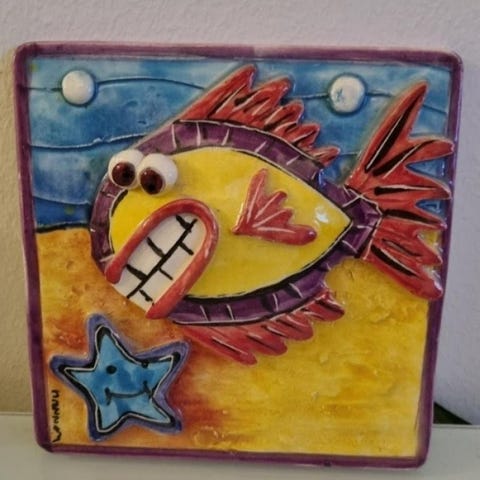 Vacker prydnads fat med fisk mönster.. str 29 x 29 cm